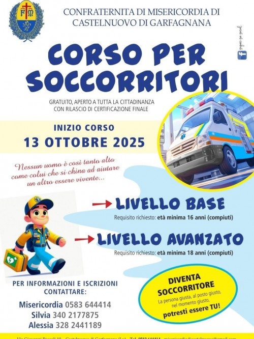 Il Covid 19 è riuscito nell'intento di fermare tutto e tutti ma ci sono persone che non si possono fermare e che non possono permettere che la paure le condizioni. La Confraternita di Misericordia di Castelnuovo di Garfagnana vuole continuare a dare la possibilità ai suoi confratelli di prestare la propria opera in piena sicurezza. Ma per fare questo ha bisogno del sostegno di tutti voi. Abbiamo bisogno di acquistare tute, guanti, mascherine, materiale di consumo e mezzi di protezione individuale. Facendo una donazione alla nostra Associazione possiamo dotare i nostri angeli del soccorso di tutto l'occorrente e potremo dare speranza. Il contributo può essere effettuato nella seguente Banca: Monte dei Paschi di Siena Ag. Castelnuovo di Garfagnana Iban IT22F 01030 70130 000000901231